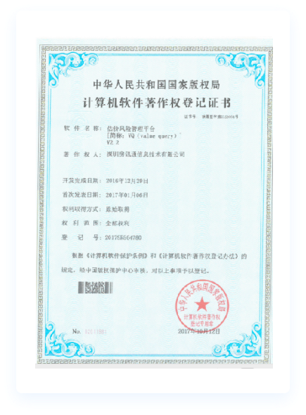 2014年1月,深圳房讯通信息技术有限公司成为中房学会员。2015 年,深圳房讯通信息技术有限公司被认定为国家高新企业和深圳市高新企业。2016年6月,公司组织并成立了全联房地产商会不动产评估专业委员会促进会员实现共同利益为宗旨。截止2018年12月,公司一共获得 20多项著作权证书。